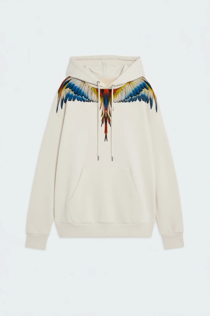 Felpa con cappuccio in cotone dal fit morbido, caratterizzata dall’iconica stampa “ali COUNTY OF MILAN” in tonalità verdi a contrasto. Dotata di cappuccio regolabile con coulisse, tasca a marsupio e finiture a costine su polsini e fondo. Etichetta 3D applicata sul fianco.